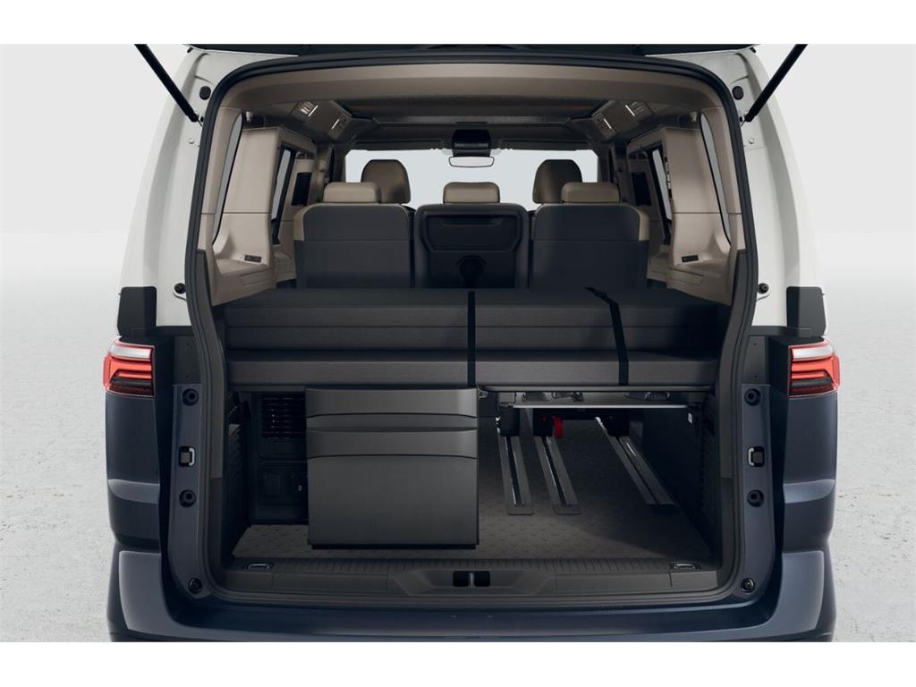 Wnętrze kampervana zostało zaprojektowane z myślą o maksymalnej wygodzie na niewielkiej powierzchni. Znajdziesz tu przestronny wysuwany dach z łóżkiem , składane tylne siedzenie zamieniające się w drugie dwuosobowe łóżko , oraz w pełni wyposażoną kuchnię i mnóstwo akcesoriów kempingowych: